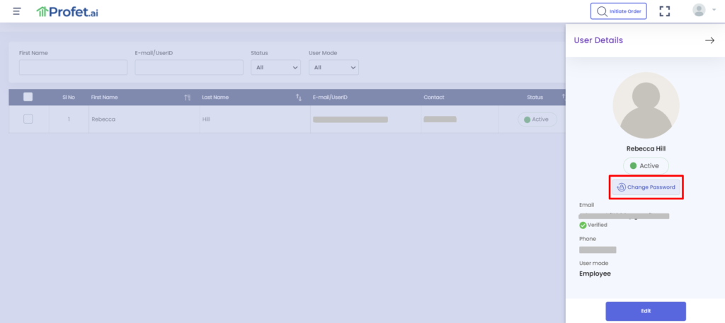 A user account in Profet.ai gets suspended after 5 unsuccessful login trials using an incorrect password. A Manager in Profet.ai is a user who has the privileges to reactivate the account and reset the user password. Only a Manager will have the option to monitor and manage other users within the company. Follow the step-by-step process for the same below: