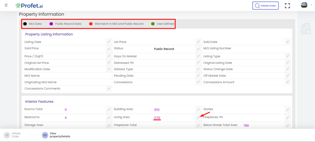 - red indicates a mismatch in data between the MLS and public record sources